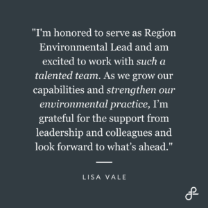 Please join us in congratulating Lisa Vale on her recent promotion to Region Environmental Lead.